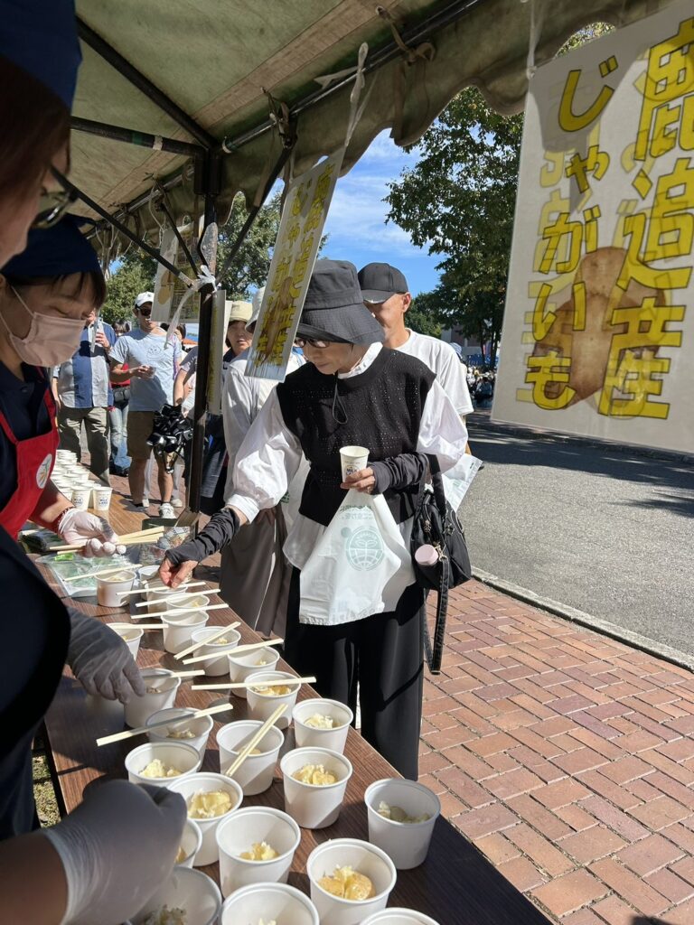 よつ葉牛乳の試飲と鹿追産馬鈴しょの試食では、約600食が配られました