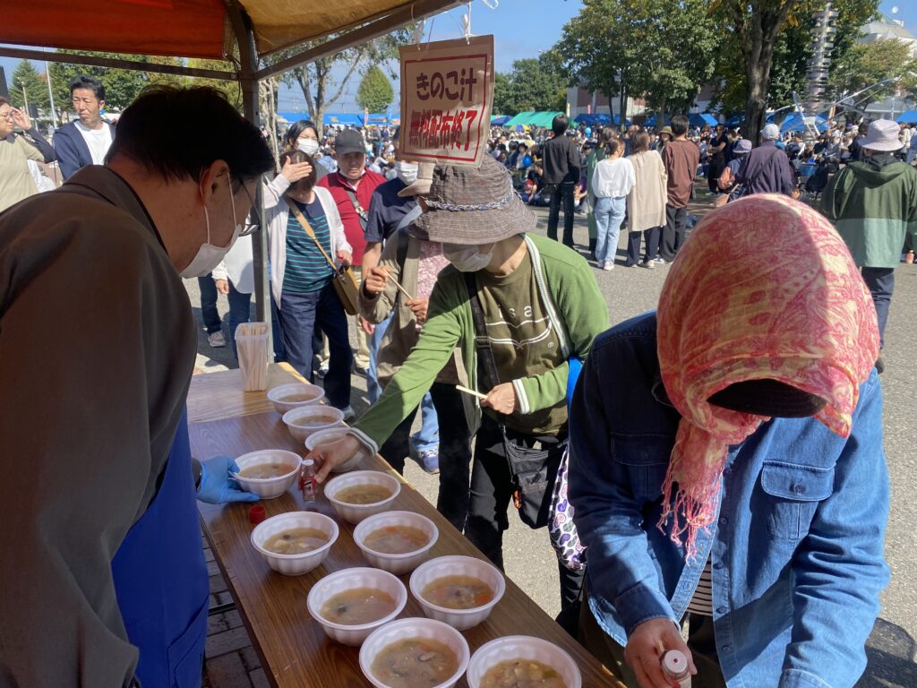 熟年会のきのこ汁を目的に来場される方もいるほど大人気で、約300食が配られました